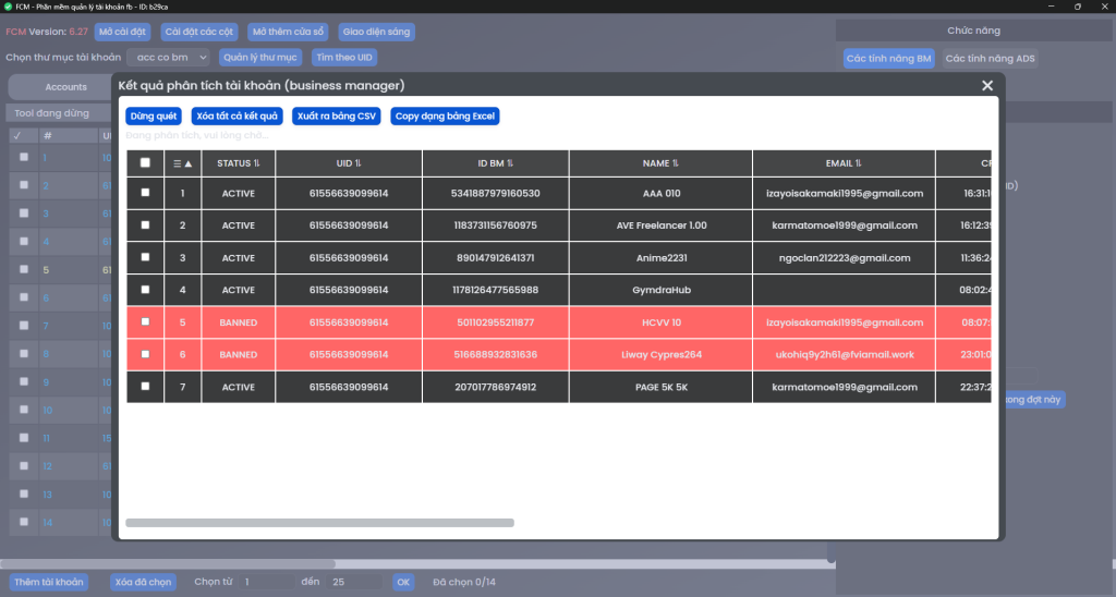 Bước 1: Import danh sách Acc vào giao diện FCM.